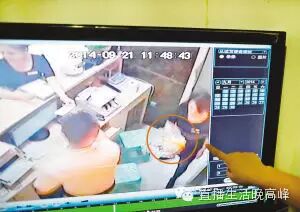 昨日,在该金店办公室,记者和彭女士等人,一起查看了店内监控视频。