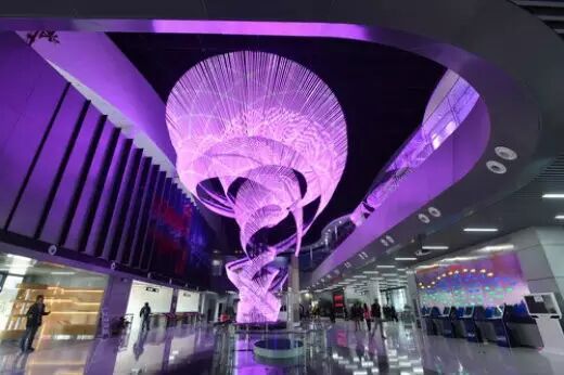 这几乎是武汉科技馆新馆最具标志性展品了。这颗树高大18.7米,重15吨,有1736根灯管螺旋排列上升,造价499万元,这也是目前国内最贵单件展品。不得不说,一进馆看到此番景象,好壮观!