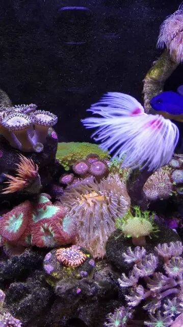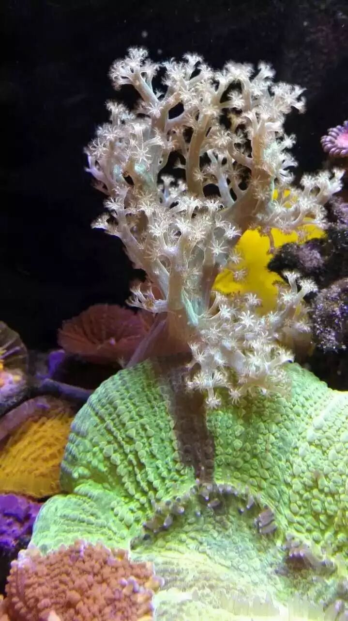 过了半年,后来又开缸,直接死石开缸的。算是有些经验,KH和PO4比之前控制的好点了。
