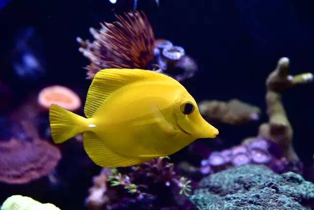 【开缸第一条鱼,黄蟋蟀,小巧可爱还有腮红。但是会啃脑珊瑚咯】