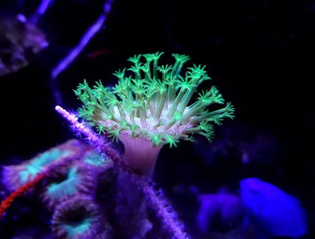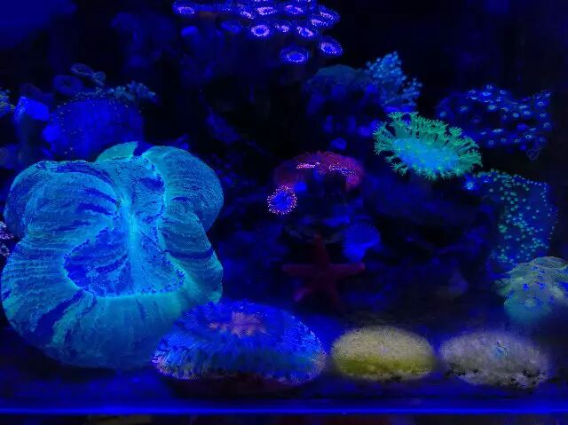 【珊瑚在蓝光下不少都是荧光色的,那个梦幻那个美】