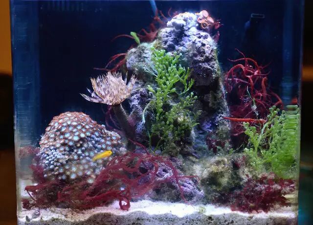 好像是两个月还是三个月的养水养石头的爆藻吧,然后就随便下的点生物闯缸。