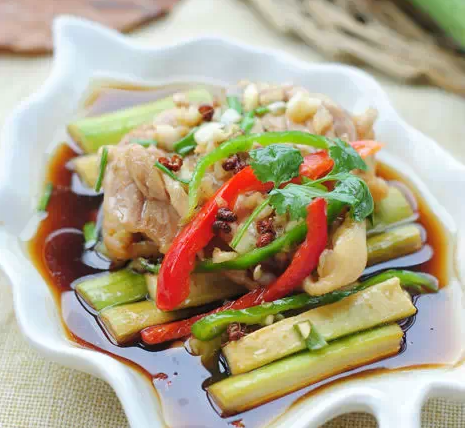 7、香油烧热,放入花椒炸香,淋在菜上即可。
