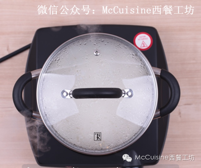 5. 教程里用的是电磁炉,在煮米饭沸腾时,应该关闭加热,但不要搬离锅,让它利用电磁炉的余热直至冷却。(如果你用煤气煮米饭,让大米沸腾5-7分钟,关掉煤气,也不要搬离锅,焖15分钟即可)