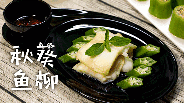 5、 装盘,秋葵龙利鱼就此完成,配点酱料一起吃更美味哟!(视频为甜辣酱+老干妈)