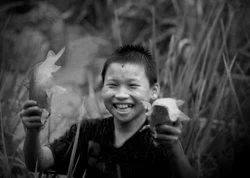 而我,则通常会所有的精力放到一个角落,我确定那里有鲤鱼游动的迹象,直到走到岸边,几棵水草之下,我已经看到了它若隐若现的鱼脊,内心推测着它的大小,然后屏住呼吸,双手向利剑一样出去,管什么水花弄湿了衣服,一把将那条鱼抓起。经常会有这样的惊喜,因为水下看鱼脊,想必也就是个不大不小的鱼,但一旦抓到手中才会发现,原来比想象的要大的多了!