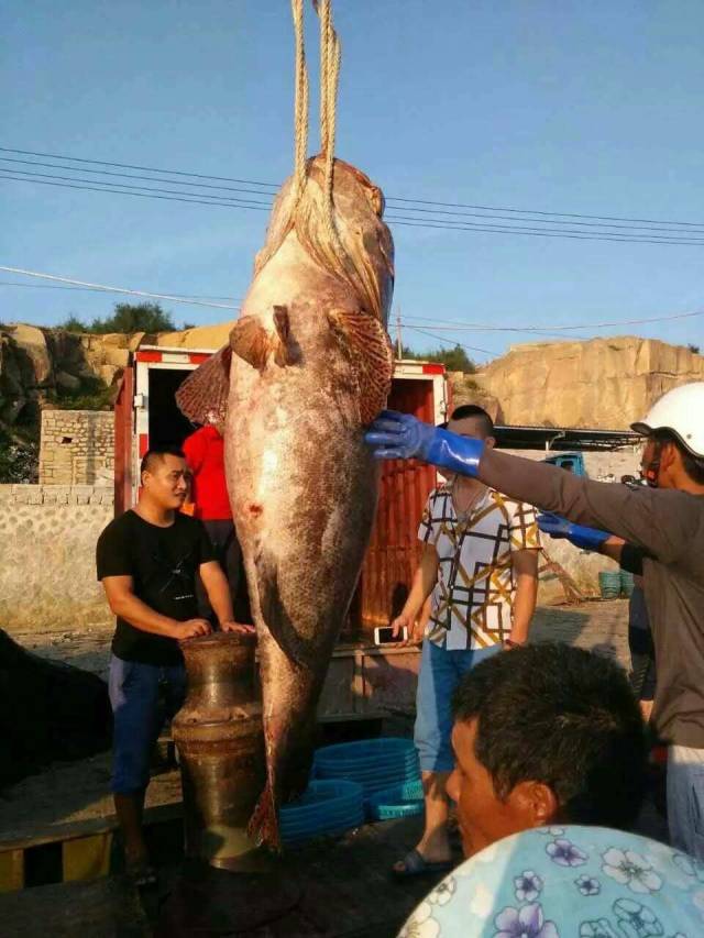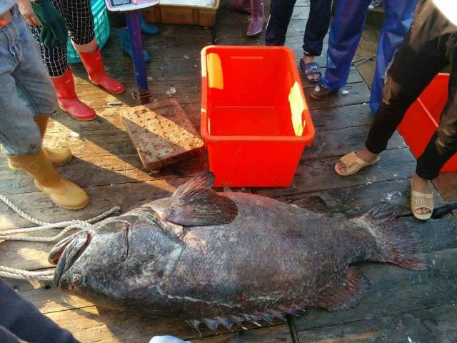 7月29日中午12点左右,平潭敖东镇芬尾大福村的林先生在捕渔拉网时,捕到了一只177斤的“大鱼王”,疑似龙胆石斑鱼。林先生称,拉网三十多年从没见过这么大的鱼。