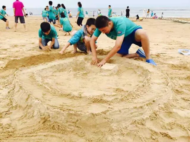 潮水很快涨了上来,意犹未尽的孩子们边随着潮水向岸边退,边时不时蹲下继续自己的“工作”。一些同学还在沙滩上进行了沙滩足球比赛。