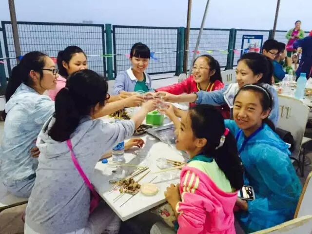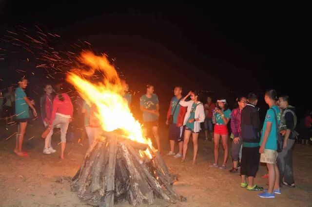 一天的活动很快结束了,同学们意犹未尽,久久不愿离去。看到这种情况,夏令营的老师们又和万宝集团协商,增加了晚饭后的篝火晚会活动。孩子们在海边吃烧烤,表演节目,度过了一个难忘而愉快的夜晚。