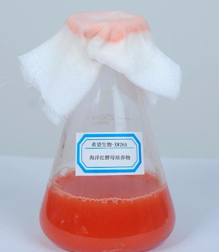 海洋红酵母是一种腐生菌,可以分解多种物质,是天然海洋环境中的“清洁工”。海产动物的育苗水体非常适合海洋红酵母的生长繁殖(如水温适宜、溶氧含量高等)。因此,海洋酵母在育苗水体中能良好地生长,迅速利用水体中的有机物、氧氮、硫化氮等有害成分,净化水质的效果显著而持久。海洋酵母在育苗水体中占有绝对的种群数量优势,可有效地抑制其它有害微生物的生长,起到了生物防治的作用,并能降低因大量使用抗生素带来的负面影响。此外,大量试验表明,酵母细胞壁能影响肠道微生态平衡,增殖肠道有益菌,抑制有害菌,提高动物免疫机能,促进新陈代谢,从而提高水产动物的生产性能和经济效益。