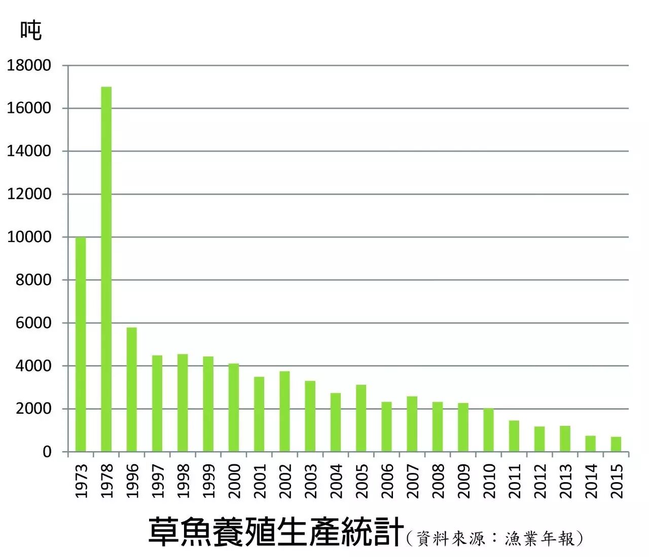 台湾草鱼养殖生产统计(资料来源:渔业年报)
