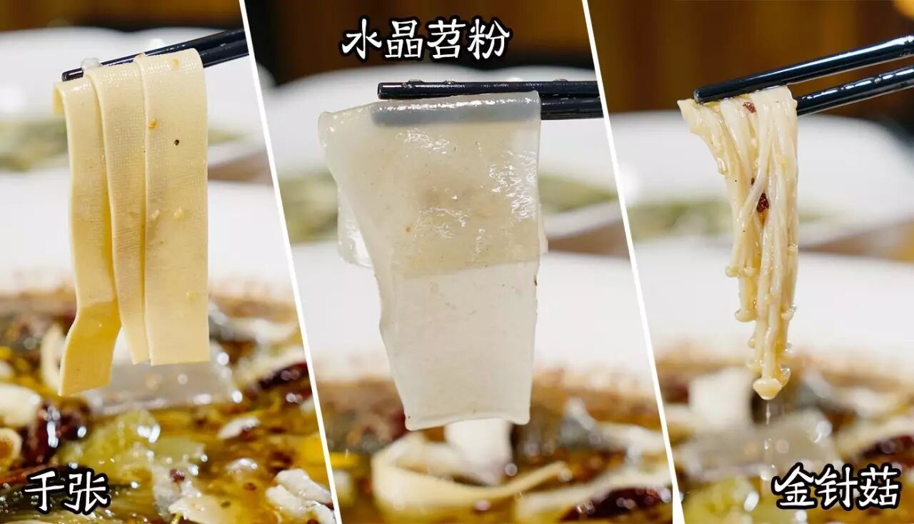 除了鱼肉,配菜也绝对不能放过,水晶苕粉、千张和金针菇都吸满了酸爽的汤汁,煮得超级入味!