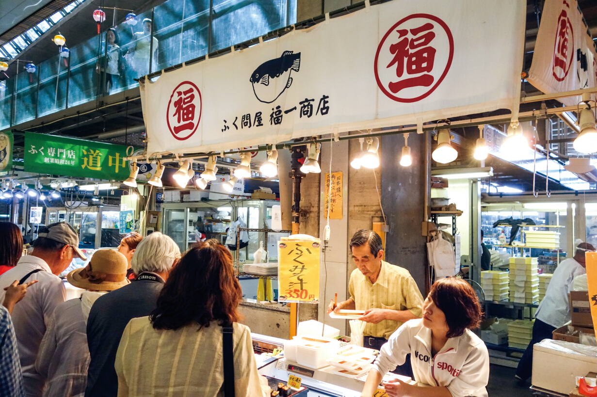 唐户市场内售卖河豚料理的店铺