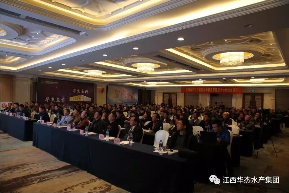华杰水产集团的发展得到主管部门及行业的高度重视和认可。应有关主管部门和广大行业同仁的要求,、科研单位以及水产行业标杆企业,在行业主管部门的支持下与2017年2月26日在美丽的澄碧湖畔南昌嘉莱特花园国际酒店隆重召开“2017江西省首届黄颡鱼养殖技术论坛”。会议当天吸引了江西各地,湖北、湖南、安徽等地300多名养殖户、经销商前来参会!