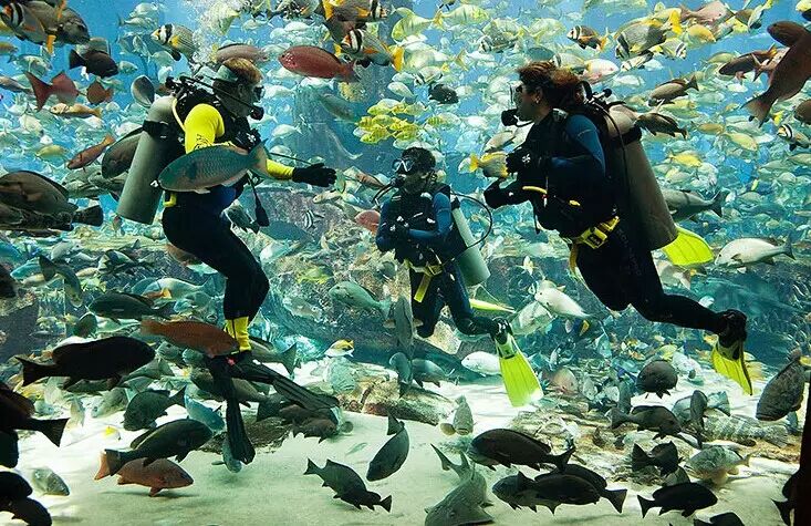 据说,这些庞大的鱼群背后是一个超过165名全职海洋生物专家组成的管理团队。团队全天候地紧密监察亚特兰蒂斯度假酒店的生态系统。而他们还有一个称谓,就是“导航员”———带领感兴趣的游客探秘海洋世界背后的秘密。很难想像这个庞大水族馆的幕后操控室竟然是可以“公之于众”的。如何进行沙过滤、如何照顾生病的鱼儿,甚至是亲手体验一次喂饲海洋生物的滋味……这个水族馆,这个海洋世界还真是乐趣多。