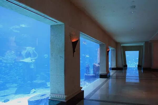亚特兰蒂斯酒店最吸引人之处便是无处不在的深海主题,最著名的大水族箱举世瞩目,令游客趋之若鹜。