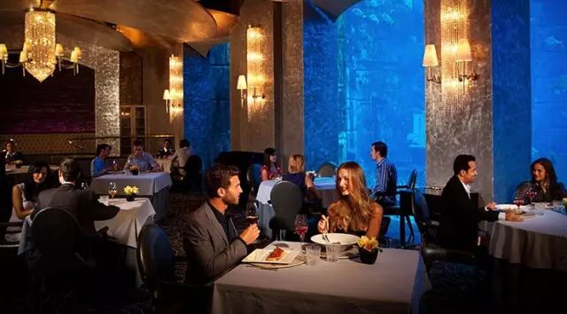 而更有趣的是,可以在房间里边洗澡边看鱼!酒店里设有“失落的空间”套房,其中一面墙是巨大的玻璃,与水族馆相连,水族馆里的鱼会不时从眼前经过,包括鲨鱼。想像着一边在浴盆里泡澡,一边享受与奇形怪状的海洋动物注视的那种奇特感觉;或者干脆放心大胆地和凶残的鲨鱼面对面地数着它的牙齿安然入睡。