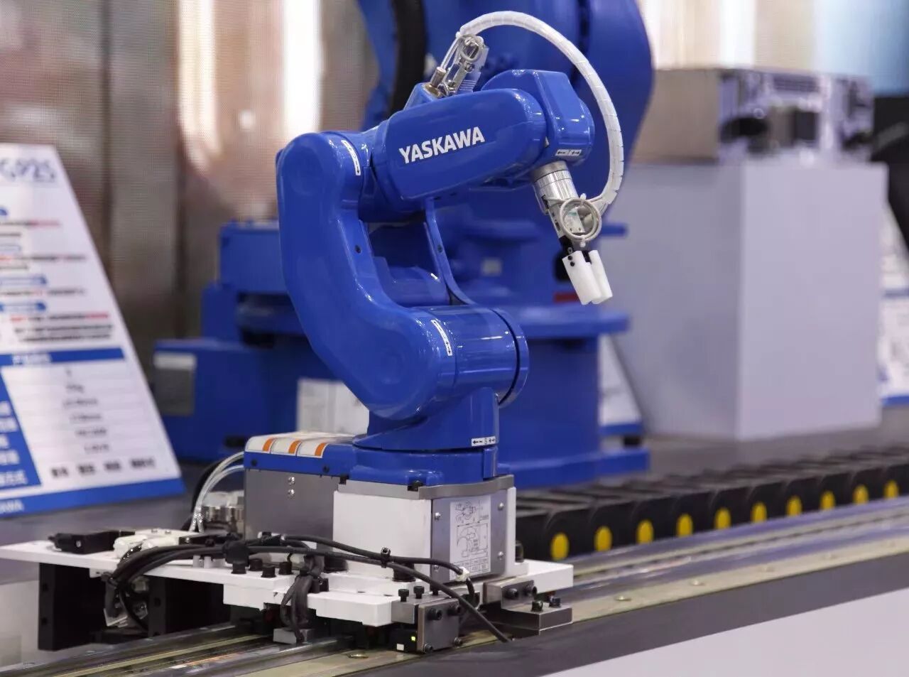安川电机(YASKAWA)在本次展会上发布了世界级小型机器人MotoMINI、新型多用途机器人GP系列(GP7、GP8、GP12、GP25)及新型控制柜YRC1000和YRC1000micro等多款产品。其中世界级小型机器人——MotoMINI重量约7kg,最大伸展距离为350mm,可搬运重量为500g,适用于3C行业小部件的组装、操作,以及电子电气零部件的配膳及插入等。MotoMINI具备小型轻量、高速、高精度三大特点,便于变换放置位置,实现了小型便携式机器人生产加工小型产品的可能。