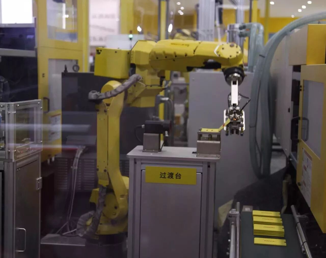 双色注塑机α-S130iA+SI-20A是唯一一款全电动双色机,第二射出单元具有与主射台相同的控制精度及稳定性。它通过I/O LINK快速连接,可节省系统搭建与调试的时间;本系统集成了注塑、取出、检测、包装为一体,实现了全过程的无人化。