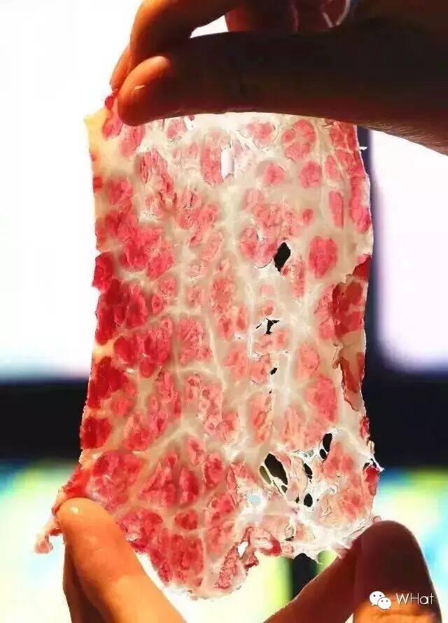 ▲ 颈后的一小块经常活动的肉,呈雪花状分布,薄切可透光。