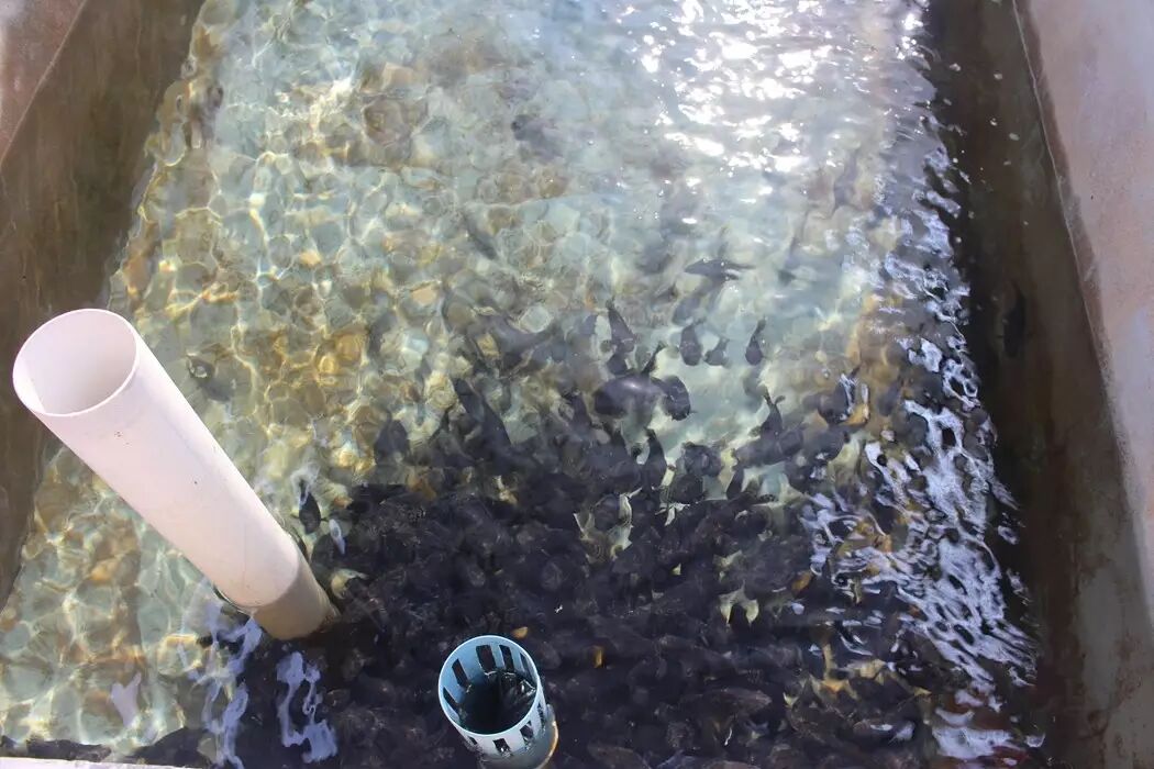 “外塘养殖是很难看到商品鱼的规格、比例,在室内水泥池养殖能够很好地把控商品鱼的规格。”林雄所在的恒昌石斑鱼养殖基地前期以室外大塘养殖为主,等到石斑鱼达到8两以上规格,置于室内水泥池中进行高密度循环水养殖,可以根据市场需求调节出鱼进度,产能最低时1平米也能够达到70斤。林雄坦言,目前这两种模式结合也是考虑到整体的养殖成本,如果有更多的资本,就可以考虑全程工厂化养殖。