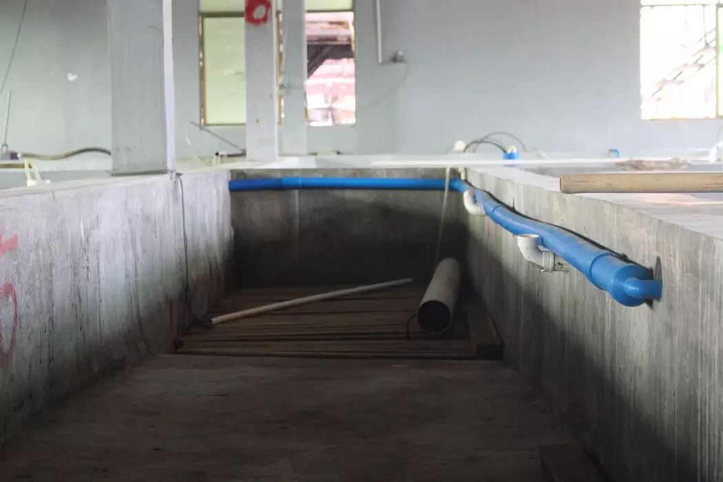 在参观现场我们还发现一个重要的细节:水泥池里面的水特别清澈。“石斑鱼吃料与否跟水质有重要的关系。我们现在基本可以做到不换水,但是也能保持好的水质,有两个重要原因:第一,品质好的饲料不会造成大排大放;第二,循环水会把鱼类的排泄物通过水流的作用排放出去。”据了解,现在有一些大的养殖场会和饲料厂合作,代加工高档石斑鱼料,对水质调控有更明显的效果。林雄在接受《水产前沿》采访时说:“工厂化循环水养殖是未来的发展趋势,这些先进的循环水养殖设备不仅让石斑鱼养殖变得更可控,总体来说更重要的是节省了电费、人工管理等成本。”