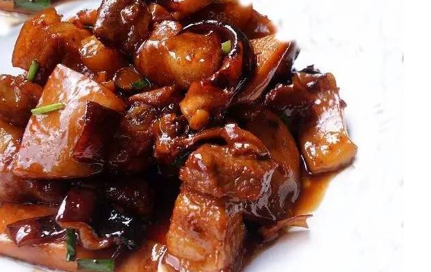 2.五花肉切块,锅里放油,先加肉煸炒,再加入墨鱼,加好料酒,加少许老抽上色,加生抽,炒几下,加水要淹没鱼肉,用小火烧(保持水似开非开状态)1-2小时,您觉得烂了就行,大火收干水,不要太干,加胡椒,少许味精,放一点点糖,加一点香葱段