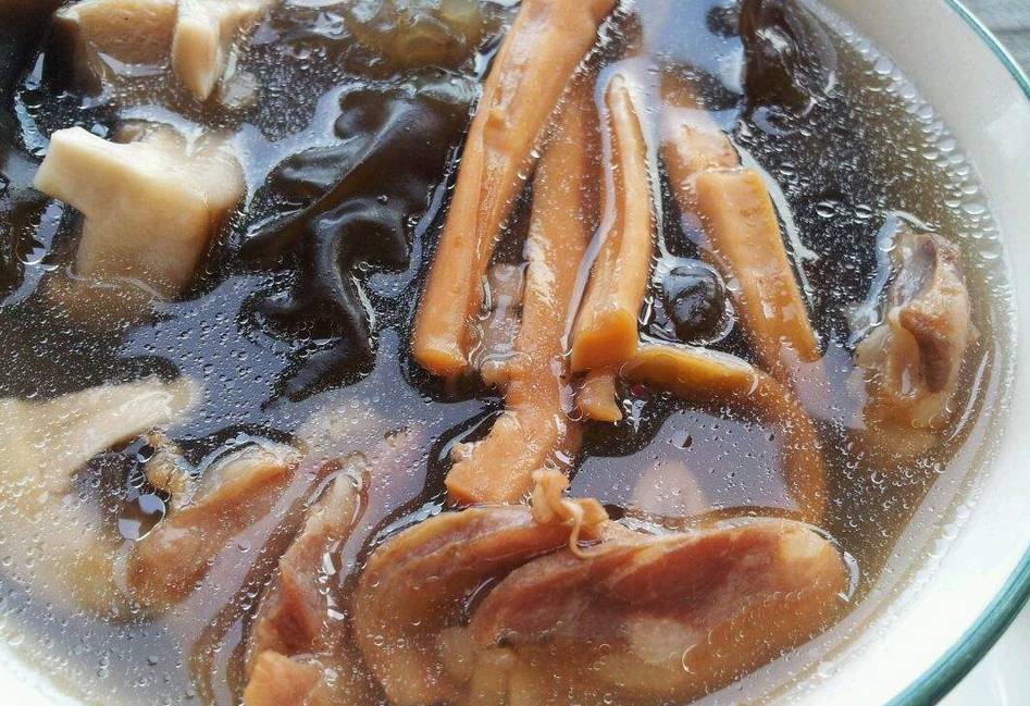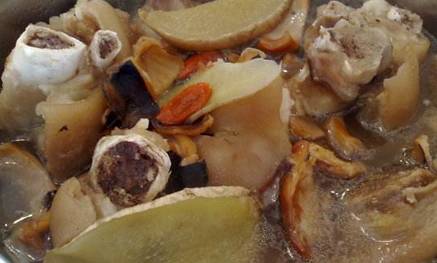 墨鱼干若干 / 排骨一斤左右 / 野生菌茹一把 / 鸡精