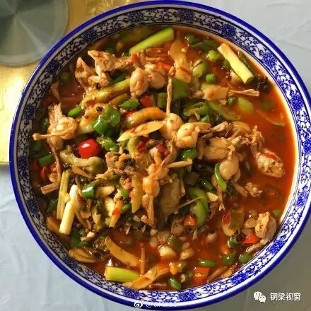 泡椒子姜丝瓜田鸡,肥美多籽泥鳅,米粉蒸肥肠,哐哐哐哐四大盆上桌
