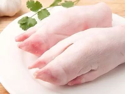 1、将墨鱼用温水(60摄氏度)发泡,切成长3厘米,宽2厘米的块;猪蹄除去毛桩,洗净,破成两块。