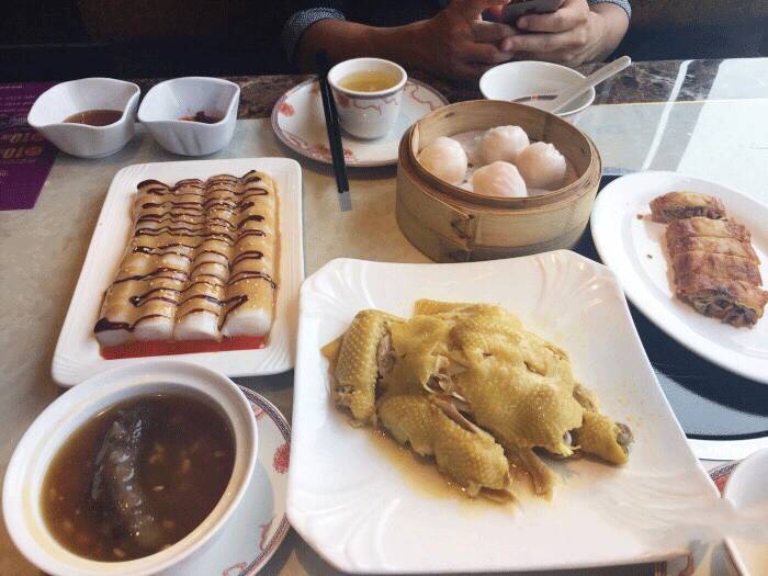 很有名气的一家港式餐厅, 虾皇饺一定是必点的,很晶莹剔透,虾肉个大新鲜。红米肠粉惊艳到了我,立面包裹的应该是油条,脆香脆香的,沾了酱料很完美的口感。