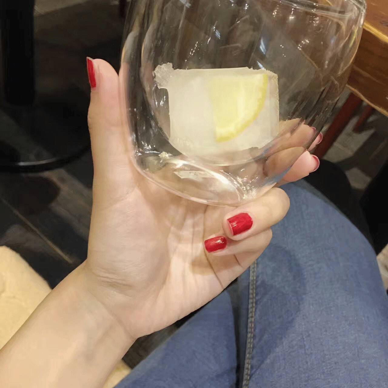 百香鲜果冰茶特别的适合这个季节,很解渴,冰块也很有特色哦,里面包裹着一个三角柠檬片,清新爽口,好评。