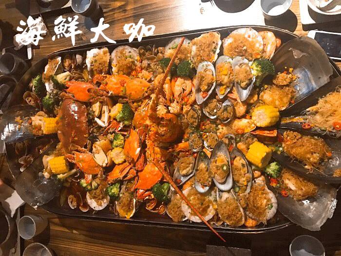 重点推荐海鲜大咖,需要抬上桌!满满的一大盆,里面的海鲜真的琳琅满目的:澳龙、皮皮虾、石蟹、梭子蟹、基围虾、生蚝、扇贝、鲍鱼、青口贝、花蛤…好了可以开始手抓海鲜了,相当的满足!
