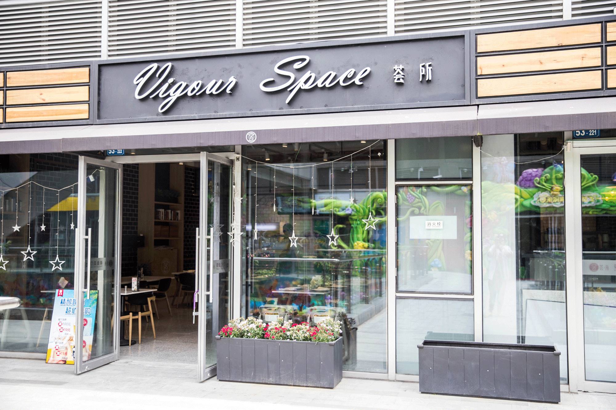 这家店的露天空间特别大,外面有好多花花草草的盆栽,店内前半部分装修的像家里,后半部分很像小酒吧,有自酿啤酒机和高脚桌。想要自己空间的朋友还有屏风可以挡起来。