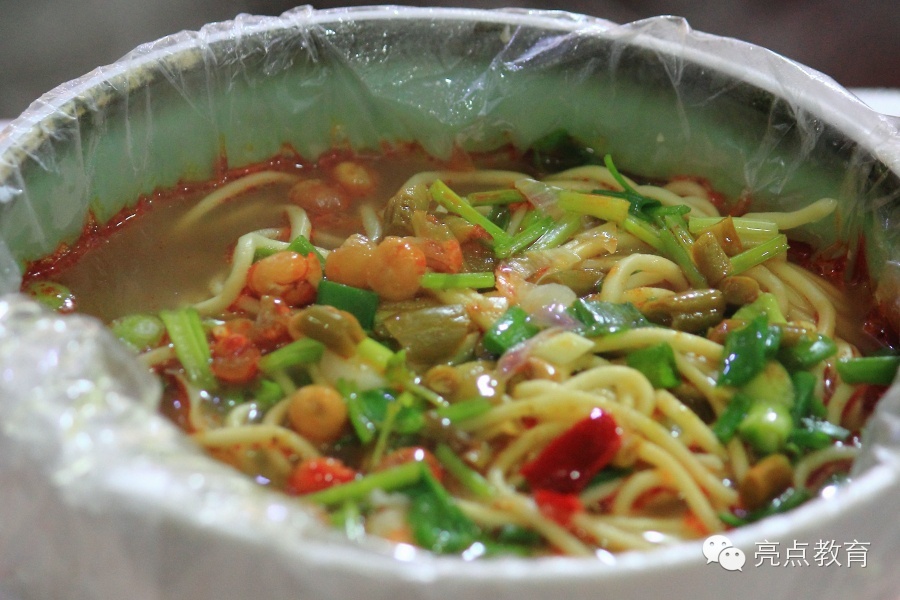 23 成都的酸辣粉。用塑料袋铺在碗里盛汤面,避免了与碗的接触,但希望这种塑料能受得了高温