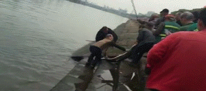 原来这条被大家顶礼膜拜的大鱼,是杨师傅昨天下午在三江桥附近的长江中钓起来的,不过,话说这重达70多斤的大鱼,又是怎么被拖上岸的呢?
