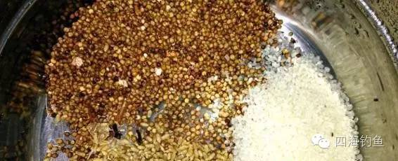 首先选用这些原材料,我的配比是高粱:小麦:大米比例为3:2:1.原因是高粱现在各种饵料中很少使用,诱鱼的效果很不错的,大米选用最少是多了会造成窝料黏黏的感觉,打窝效果不好,个人观点,小米为何没有说比例,请看后面的描述。
