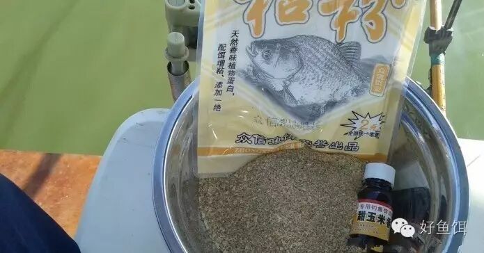 在使用的时候,加一点粘粉,粘粉的量,根据个人使用的情况来定,喜欢粘度高一点的就加多一点,喜欢粘度低一点的就加少一点。钓草鱼我喜欢加一点玉米香精,但是量不要多,不是什么草鱼都喜欢玉米香精的。![]()