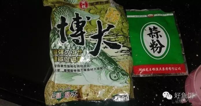 10%的博大、10%的霸王鲫鱼料、5%拉丝粉、5%蒜粉。拉丝粉是起到调整状态,饵料里面有拉丝粉,饵料如水后会膨胀,对鱼的诱惑力会增强。![]()