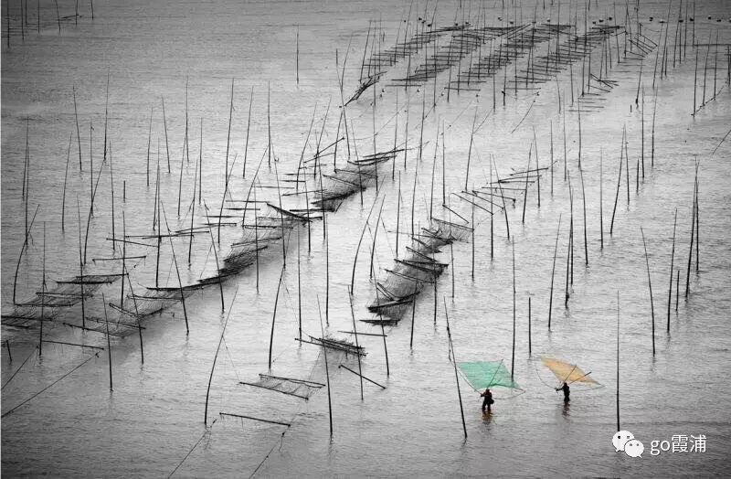 每当北岐紫菜生产的繁忙季节,滩涂上万根竹竿插成一块块方形的网框,由远及近,绵延数十里,蔚为大观。北岐的日出,是色友们趋之若鹜的景点之一,当太阳越出海面的那一刻,快门声响成一片,紫菜在丝网上挂着一条条色带,红的,黑的,紫的,宛如一幅没有经过修饰的水墨画,被收入一个个镜头,被记录在一张张彩色胶片上。