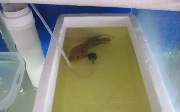 在此要特别说明,如果罗汉鱼已经出现肠炎导致的腹水现象,一般会选择用手挤压肚中水分,但治愈的几率较小。请大家做好疾病预防。主要在喂食方面注意,正常喂食红虫、饲料、河虾即可,河虾要去头尾,不要有较硬的东西被爱罗吃下。