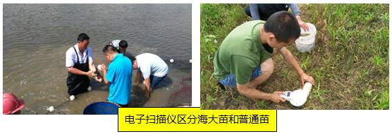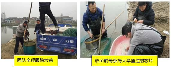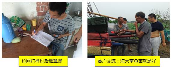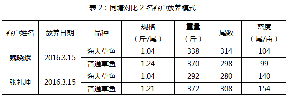 2016年,为了彰显海大草鱼苗优势,在镇江区域选择2名客户,进行海大草鱼苗和普通苗的同塘对比,把海大草鱼苗和普通苗放在同一口池塘中(其中海大草鱼苗注射芯片),在水质、投喂等外界条件完全相同的条件下,对比生长速度、肥满度等。