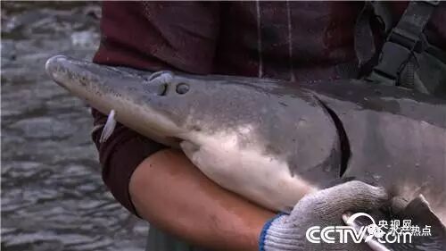 鱼在水里很滑,身上还有倒刺,杨士波想把鲟鱼抱起来给我们看看却连连失手。