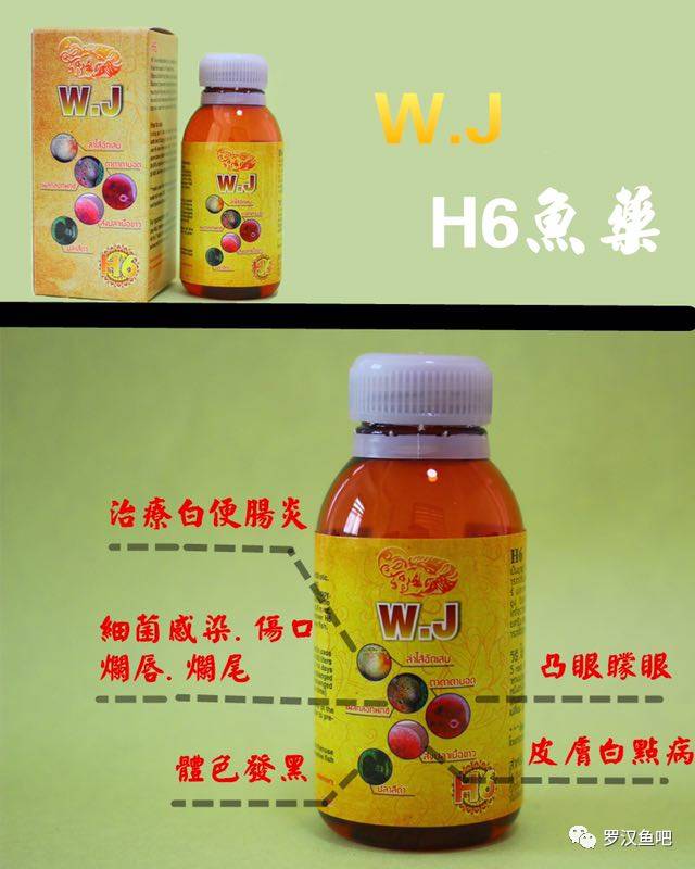 这是目前唯一的一款专门为罗汉研制的红色液体浓缩型鱼药.泰国WJ鱼药H6别看小小1瓶.但是功能效果强大.鱼友必备品.请认准WJ标志品牌