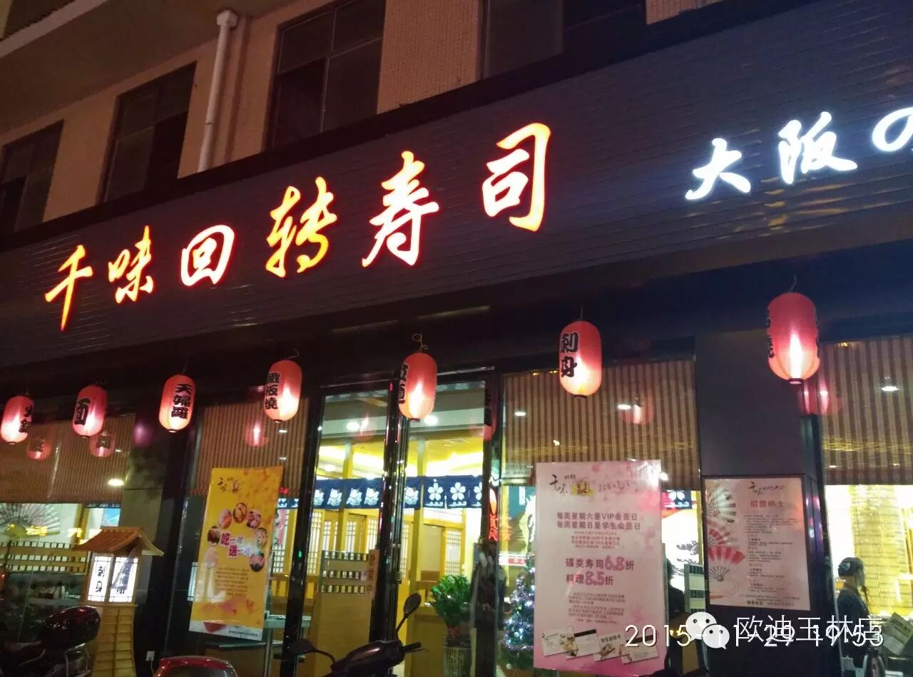 千味回转寿司玉林炙手可热的回转寿司品牌,千味寿司的黄金地段,交通方便,店铺环境优雅干净,可同时容纳100人用餐。服务热情周到,作为第一家千味回转寿司店,我们立志于把手握寿司的精髓结合最新鲜的食材,制作出丰富鲜美的寿司品种。除此之外本店还推出多款美味主食和料理。让您体会一次别出心裁的美食之旅。本店长期举办各式各样的优惠活动,拥有完善的会员体系,只要到店消费,即可免费申请会员卡,享受全国千味寿司8.5折优惠和积分换礼活动。让崇尚健康饮食和喜爱寿司的朋友们,可以拥有地道的日式美食。![]()