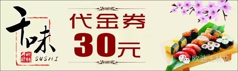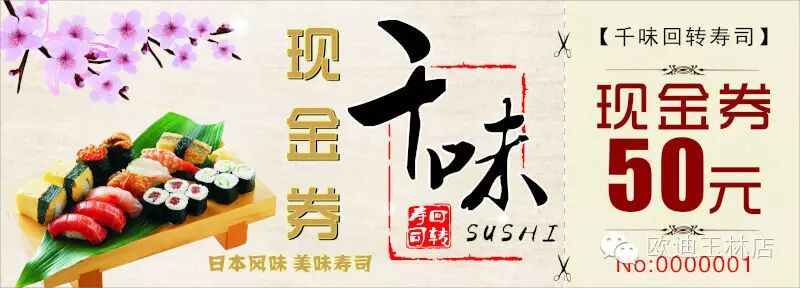 参与《东京故事》PARTY的客官均可免费获得千味回转寿司免费送出的50元、30元代金券。抢到就是赚到,先到先得。送完为止。