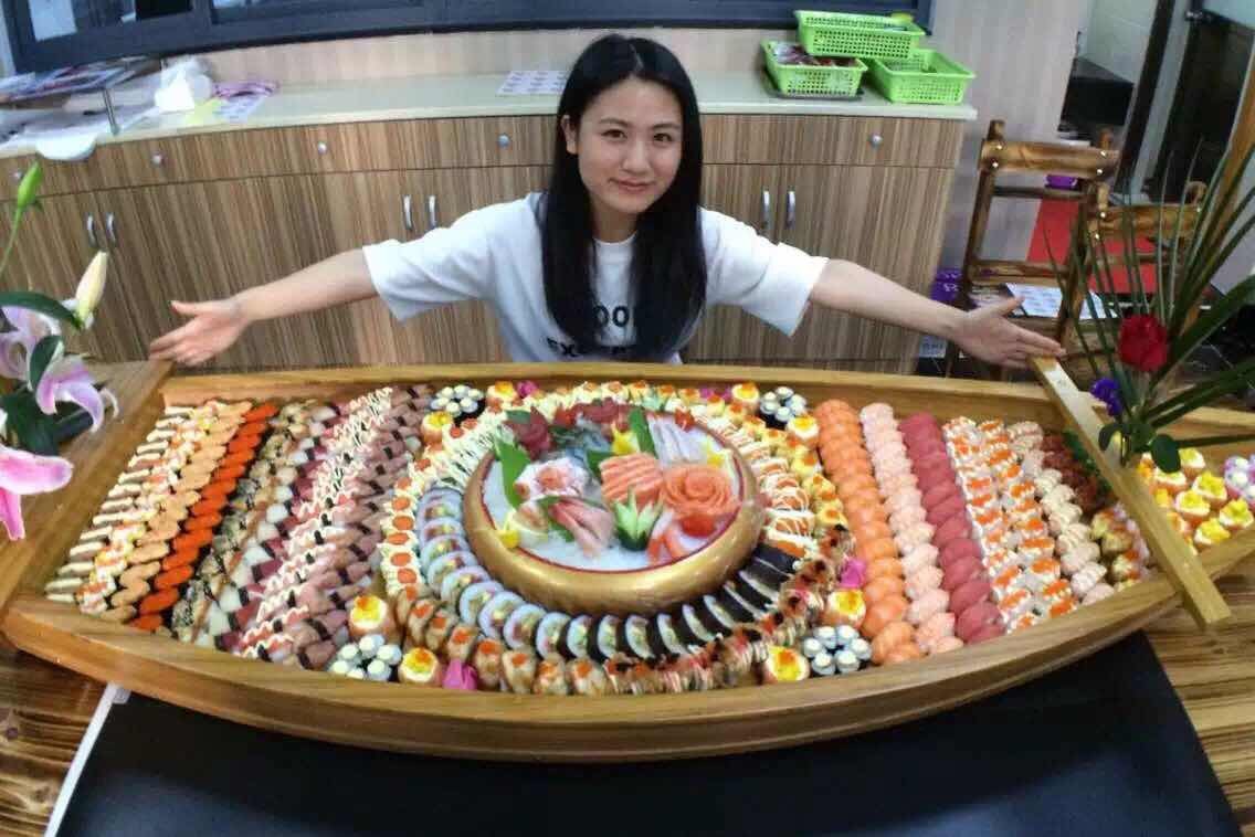 反正当这个2米多长的“寿司船”满载20多种寿司与生鱼片出现在我们面前时,我是惊呆咯!因为,因为,从来没见过这么多,这么美,品种还如此丰富的寿司同时出现啊,而且,还是出现在一条船里!!