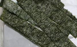 2.海苔剪成长条状,宽度要稍高于饭团。