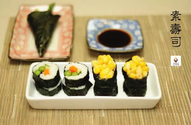 PS:一般寿司会用蛋黄酱,但是吃素的朋友就可以用黄芥末酱,味道不比蛋黄酱差的~