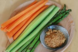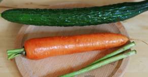黄瓜,胡萝卜切长条,胡萝卜和芦笋用开水烫一下待用~
